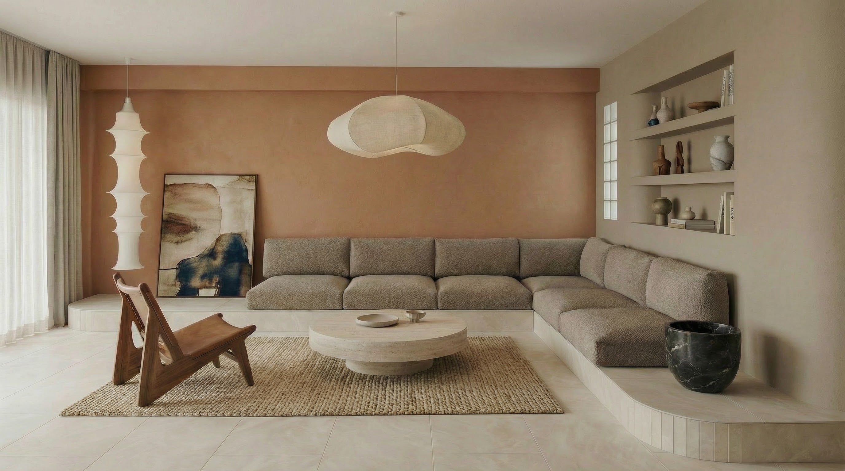 by a muted palette of terracotta, sand, and cream, where texture takes precedence over ornamentation. The design is a sophisticated fusion of styles—a meeting point between the rustic warmth of Mediterranean vernacular and the clean, disciplined lines of Japandi minimalism.