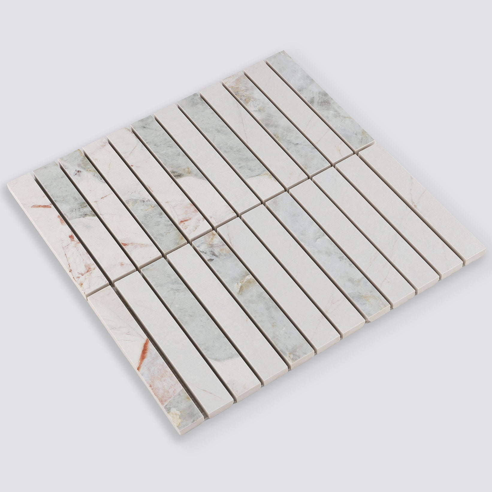 This bathroom looks like it is straight from a magazine. The tone, texture, and finish are so well matched that you almost cannot tell where one tile ends and another begins. Using Pink Patagonia both in large format and as mosaic — wrapping the vanity border — creates a detail that feels custom-built and not easily replicated. What makes it truly unique is the balance of blush and soft green undertones, giving the space character without making it too pink or too decorative. It feels luxury, but approachable — expressive, but still calm and timeless.