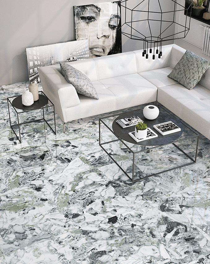 This piece is a stunning replicate of one of the world's most expensive gems, traditionally found in Western China. Emerald Ice Jade displays a natural blend of dark green and milky white, which is almost transparent in quality and endows the space with a noble atmosphere.
