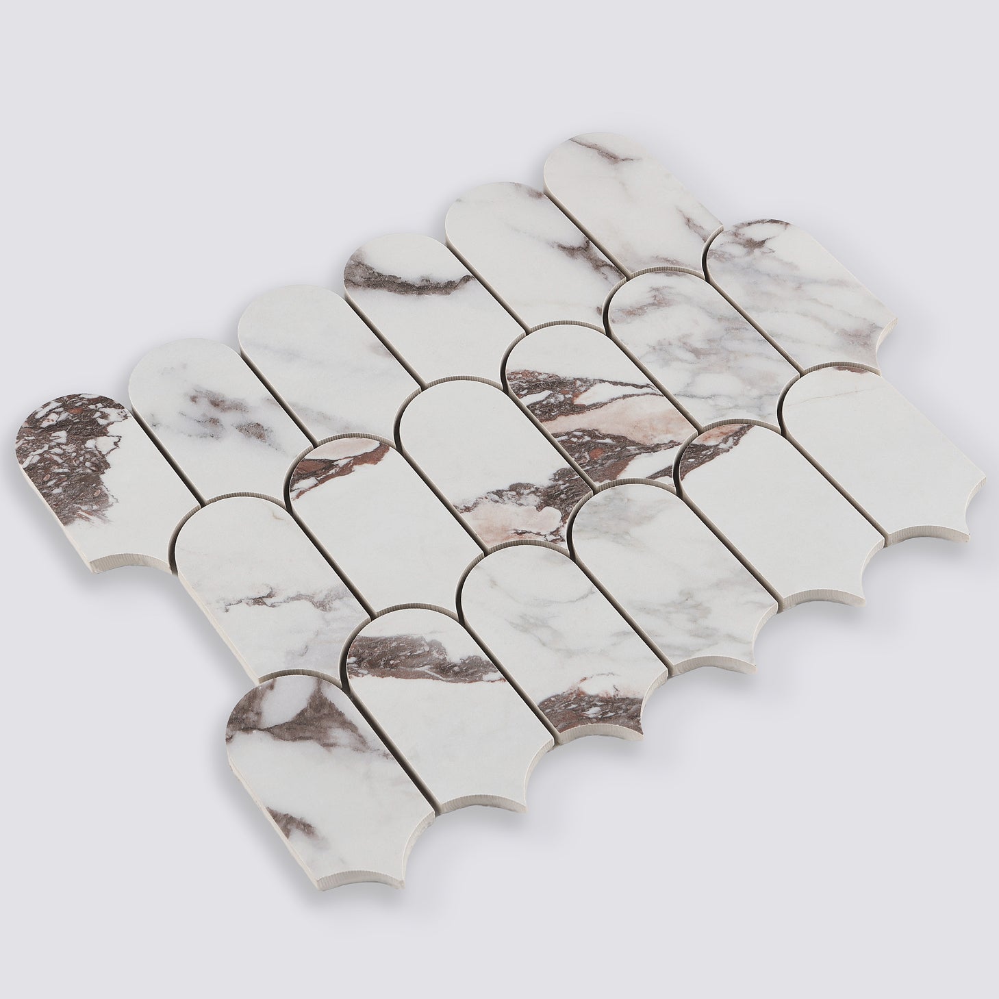 Roman Retreat draws inspiration from classical Italian luxury — expressive, warm, and beautifully balanced. The warm undertone of Tuscan Crème tiles creates a soft backdrop, allowing Calacatta Viola to become the unmistakable focal feature. The violet veining is bold, but softened by the warm beige base, making the room feel both dramatic and refined, not cold or overpowering.